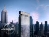 The Torch is a 52-story mixed-use supertall skyscraper at 740 Eighth Avenue in Midtown, Manhattan. Designed by ODA and developed by Extell, the 1,067-foot-tall structure will span 875,372 square feet and yield an 825-room hotel topped by a public outdoor observation deck with a drop ride attraction in its signature stemlike column. The project is also slated to include lower-level retail space, a restaurant on two of the upper floors, a VIP lounge, and a pool deck for hotel guests.