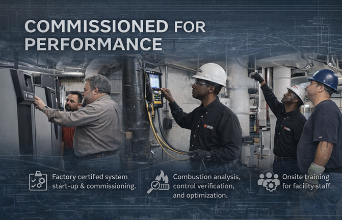 Wallace Eannace provides factory certified start up and commissioning services across our core product lines. This includes combustion analysis, control verification, pump programming, and system optimization. Performance is measured, not assumed.